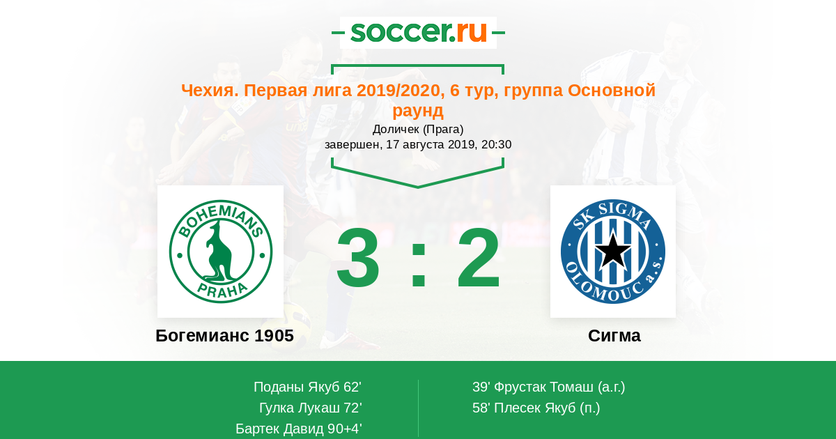 Протокол матча Богемианс 1905 против Сигма