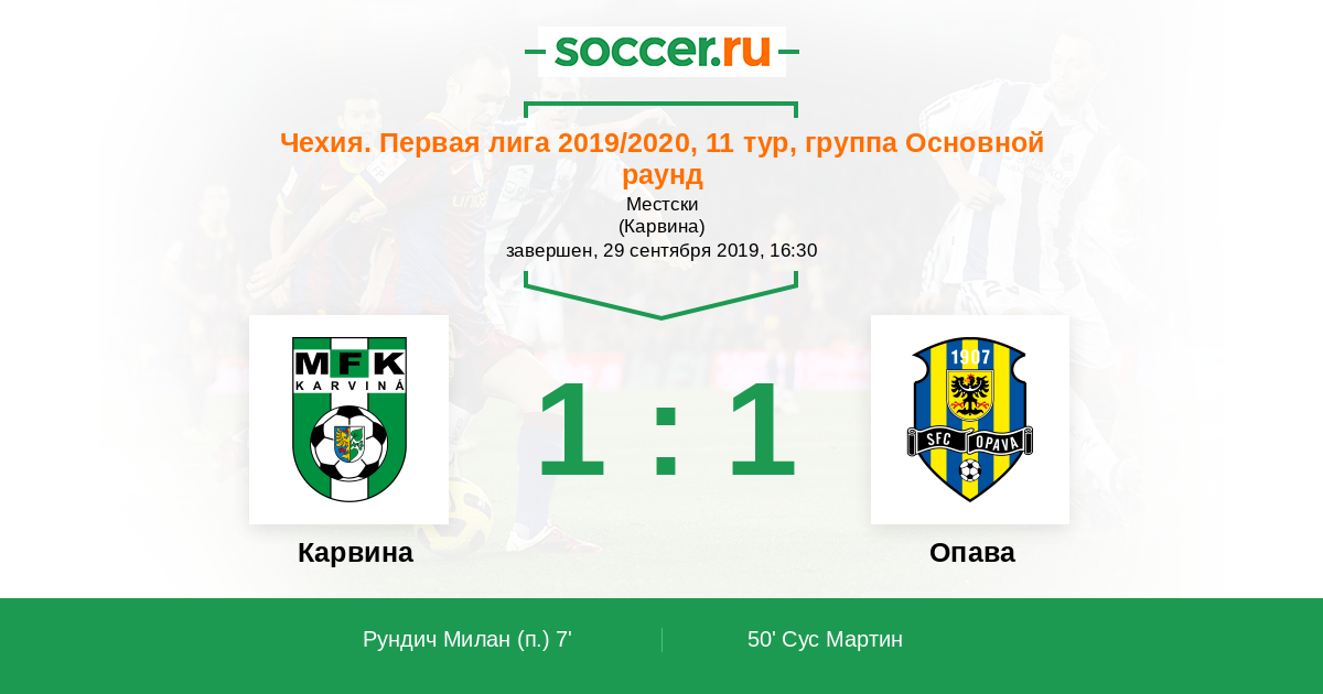 Протокол матча Карвина против Опава