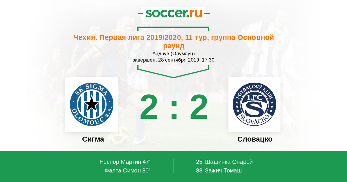 Протокол матча Сигма против Словацко
