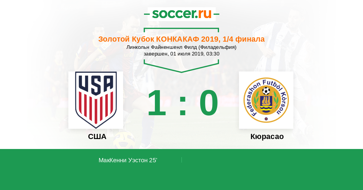 Протокол матча США против Кюрасао