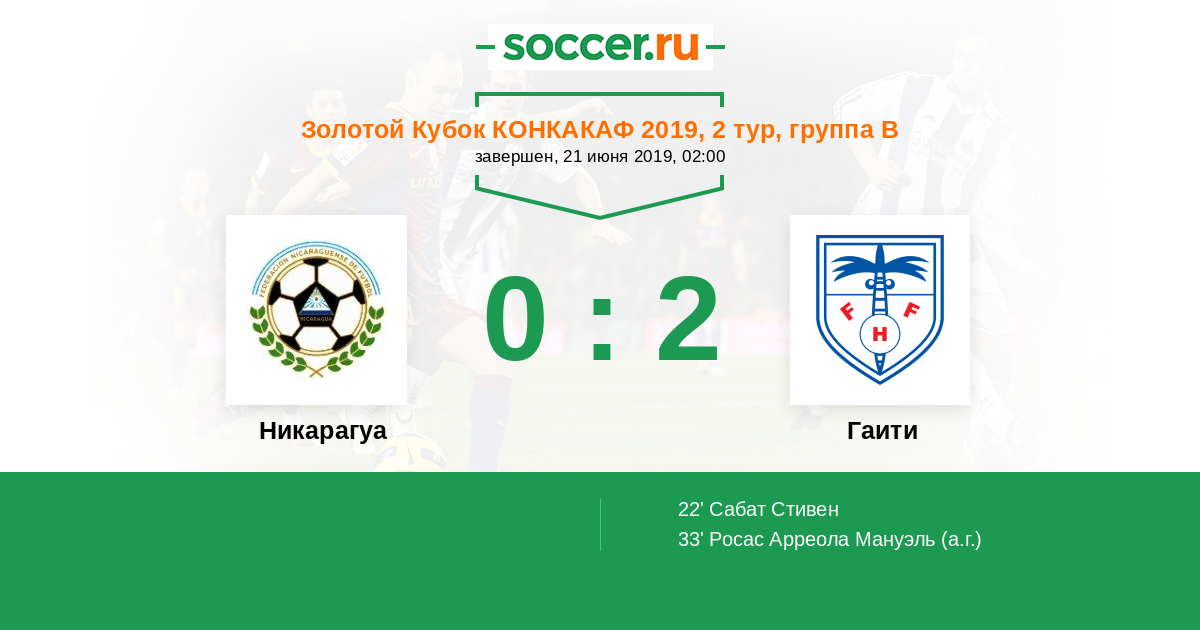 22' (0:1) Сабат Стивен (19) (Назон Дюкенс (9))