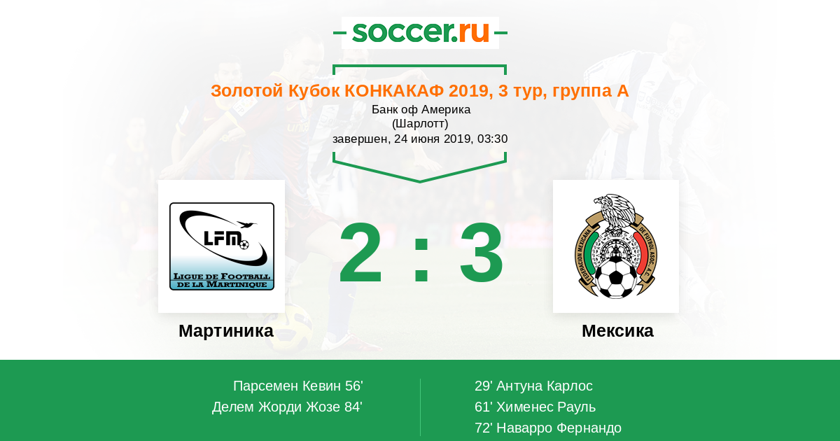 Протокол матча Мартиника против Мексика