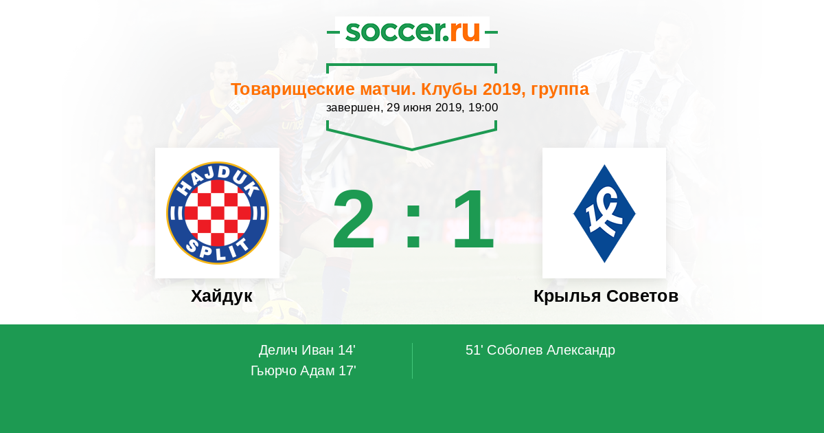 Протокол матча Хайдук против Крылья Советов