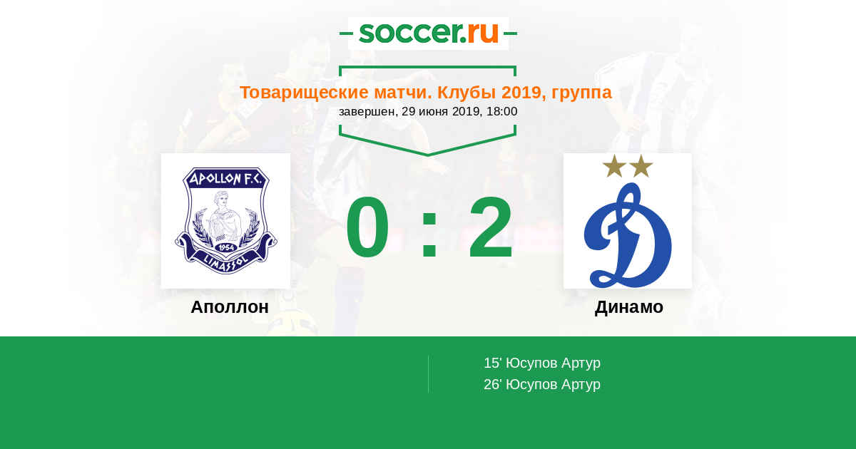 Протокол матча Аполлон против Динамо