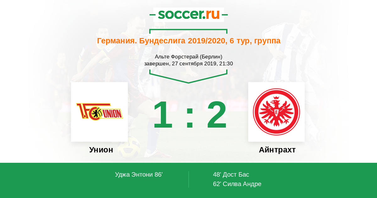 Протокол матча Унион против Айнтрахт