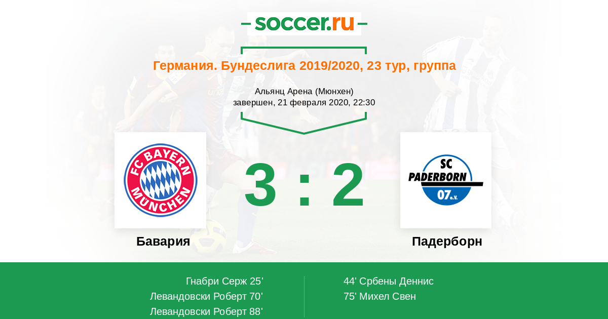 Протокол матча Бавария против Падерборн