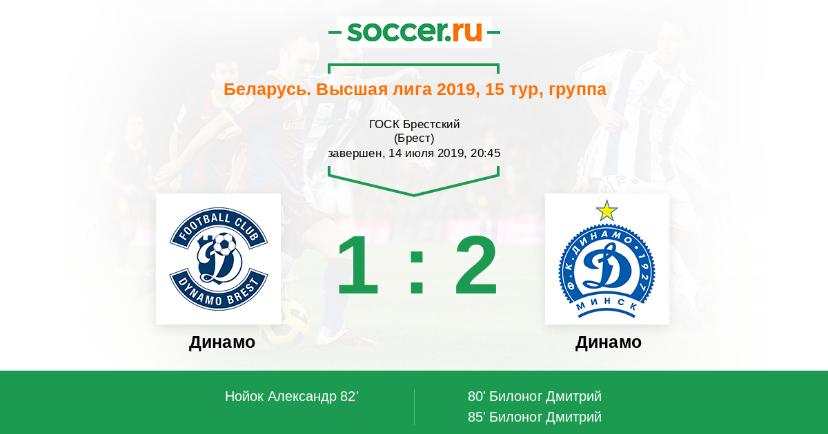 Протокол матча Динамо Брест против Динамо Мн