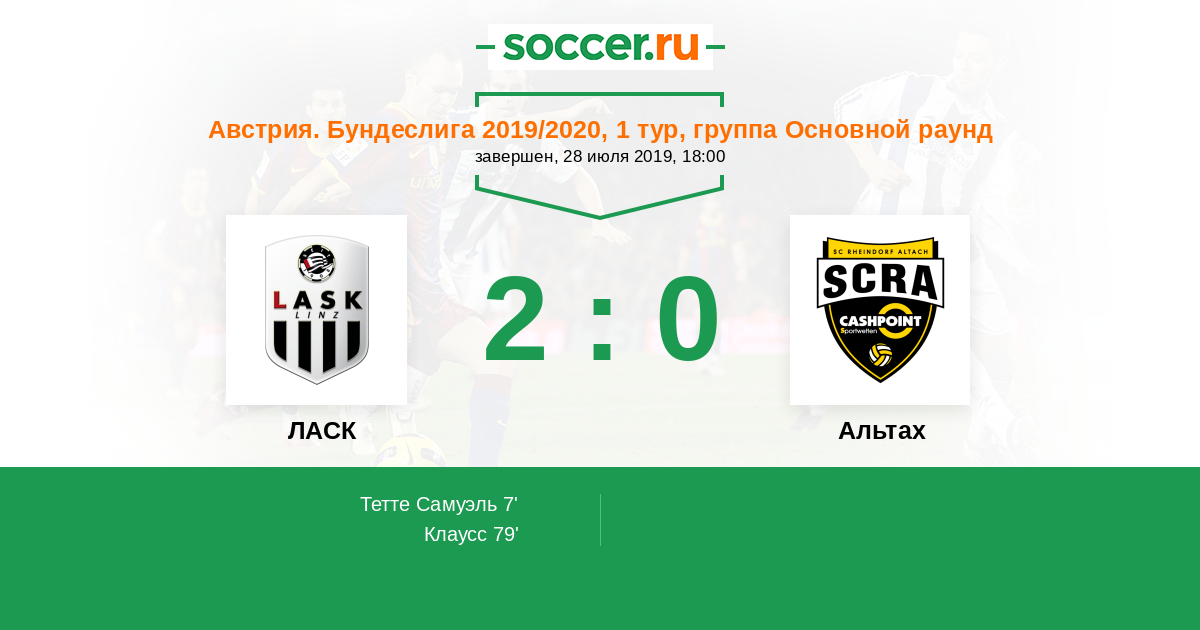 Протокол матча ЛАСК против Альтах
