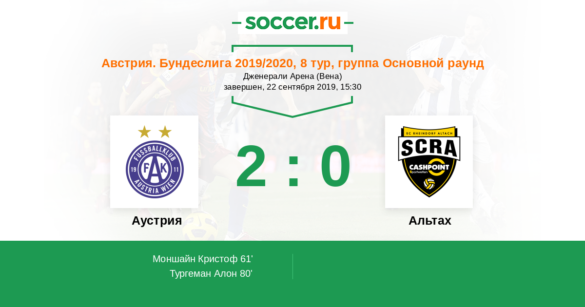 Протокол матча Аустрия против Альтах