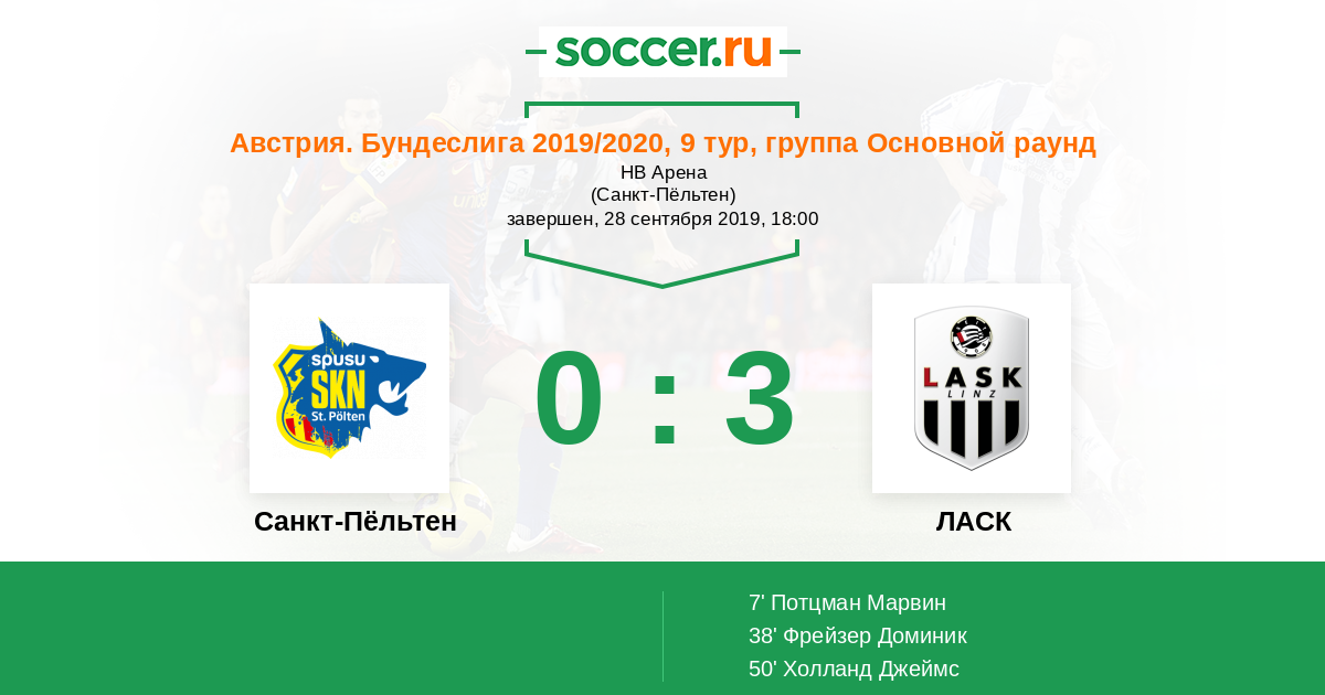 Протокол матча Санкт-Пёльтен против ЛАСК