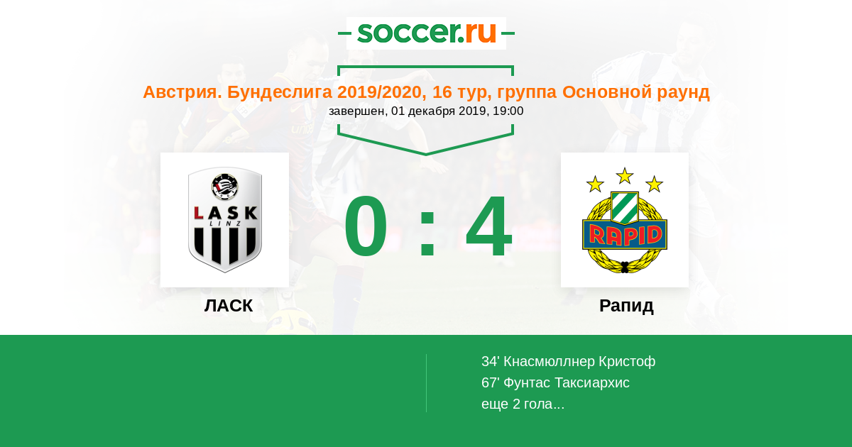 Протокол матча ЛАСК против Рапид