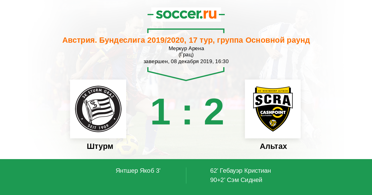 Протокол матча Штурм против Альтах