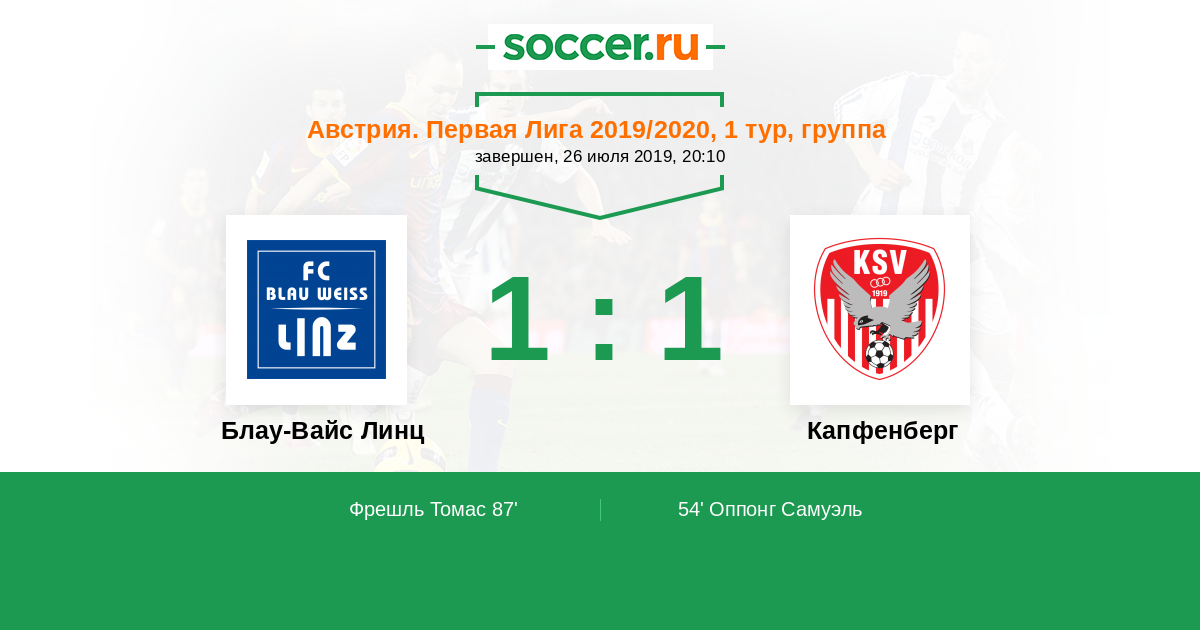 Протокол матча Блау-Вайс Линц против Капфенберг