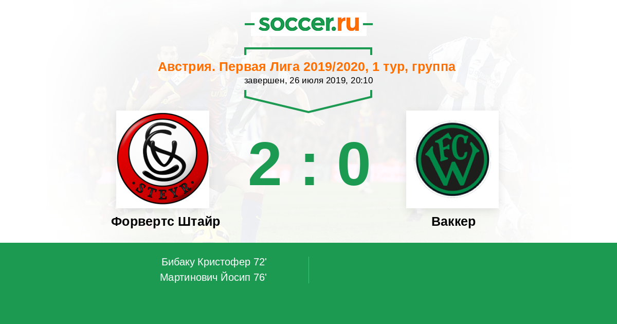 Протокол матча Форвертс Штайр против Ваккер
