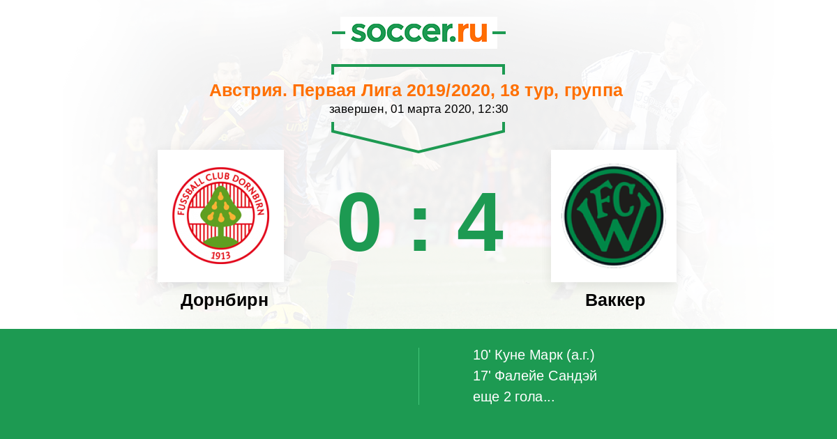 Протокол матча Дорнбирн против Ваккер