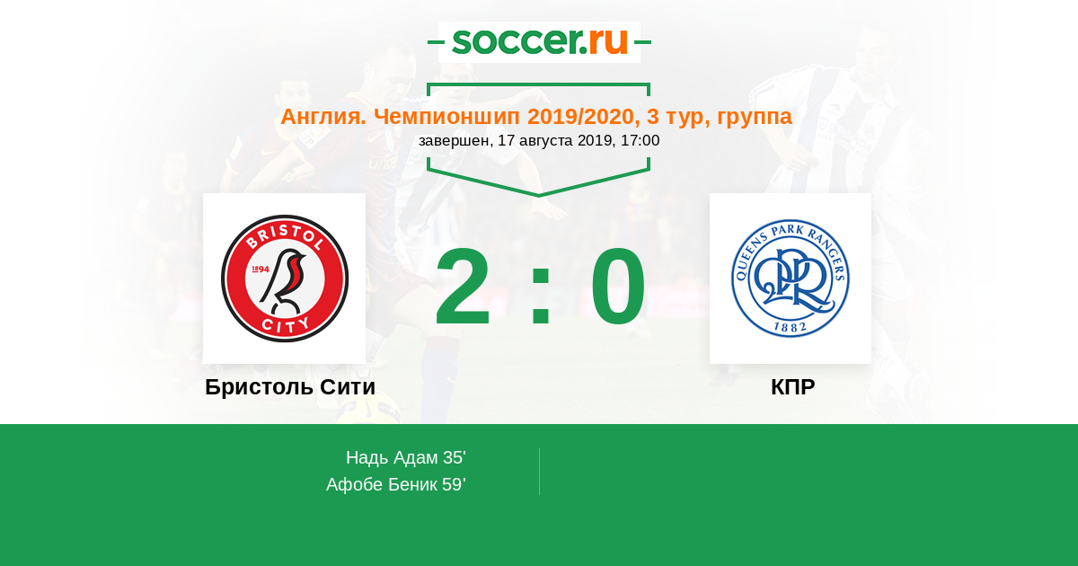 Протокол матча Бристоль Сити против КПР