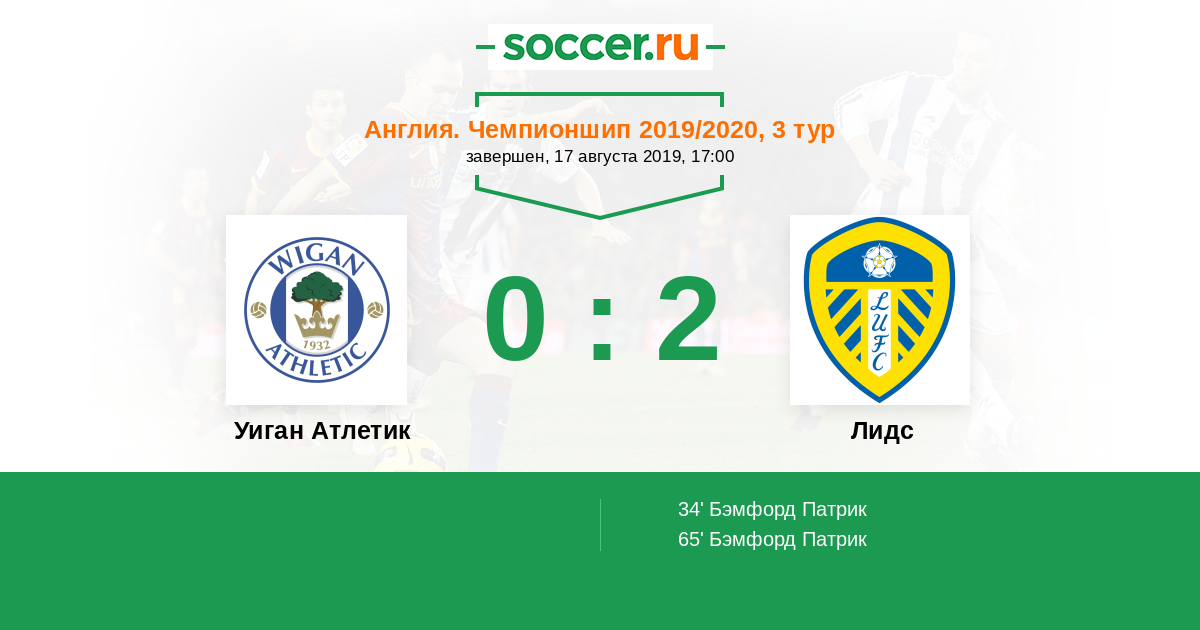 Протокол матча Уиган Атлетик против Лидс