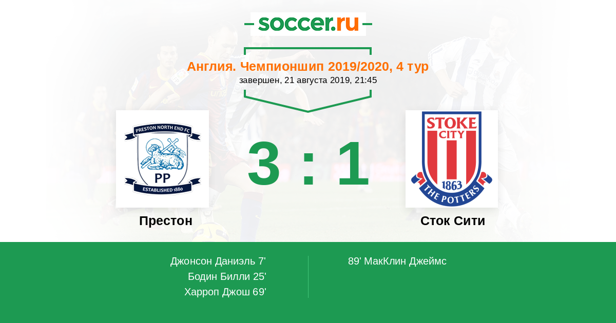 Протокол матча Престон против Сток Сити