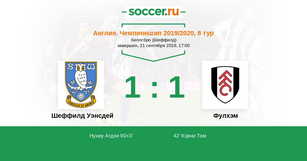 Протокол матча Шеффилд Уэнсдей против Фулхэм