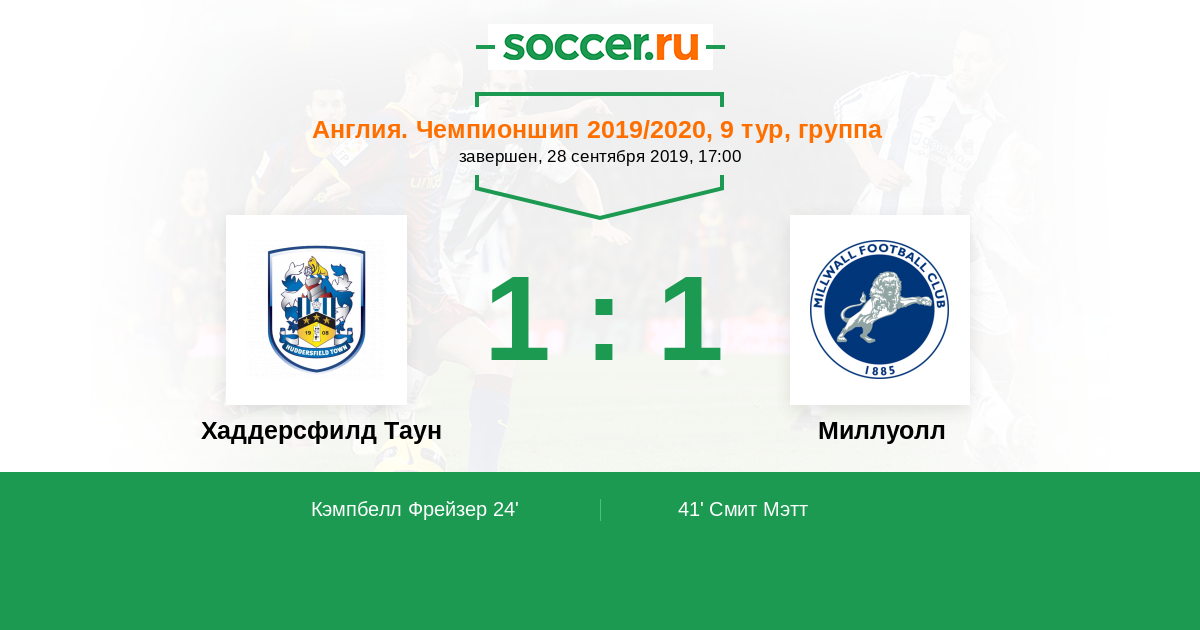 Протокол матча Хаддерсфилд Таун против Миллуолл