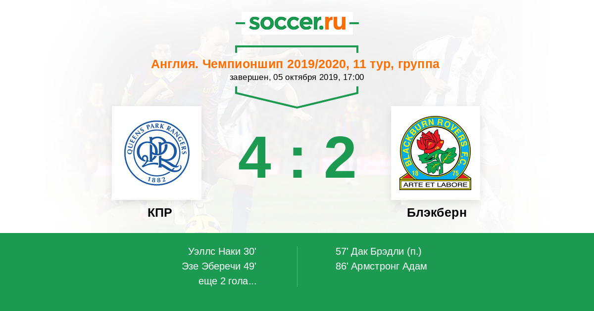 Протокол матча КПР против Блэкберн
