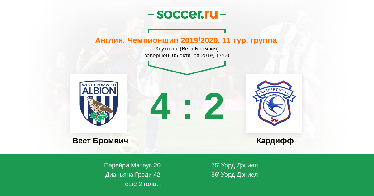 Протокол матча Вест Бромвич против Кардифф