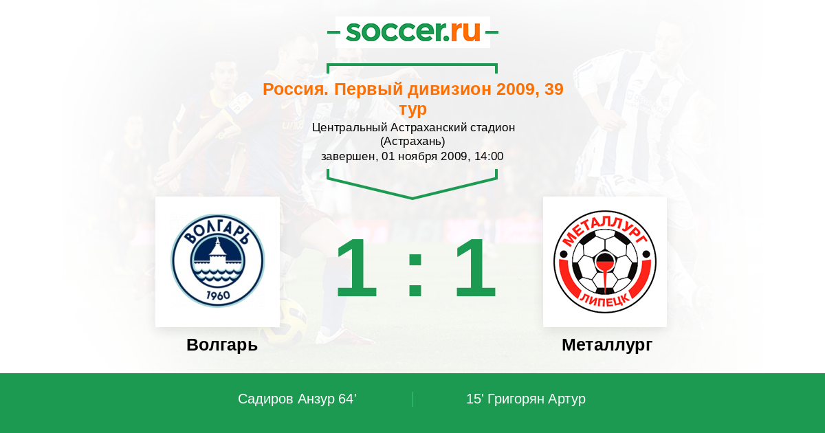 Протокол матча Волгарь-Газпром-2 против Металлург