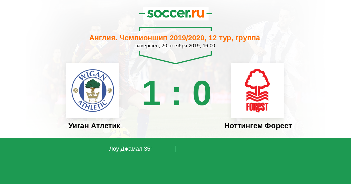 Протокол матча Уиган Атлетик против Ноттингем Форест