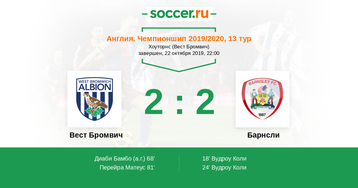 Протокол матча Вест Бромвич против Барнсли