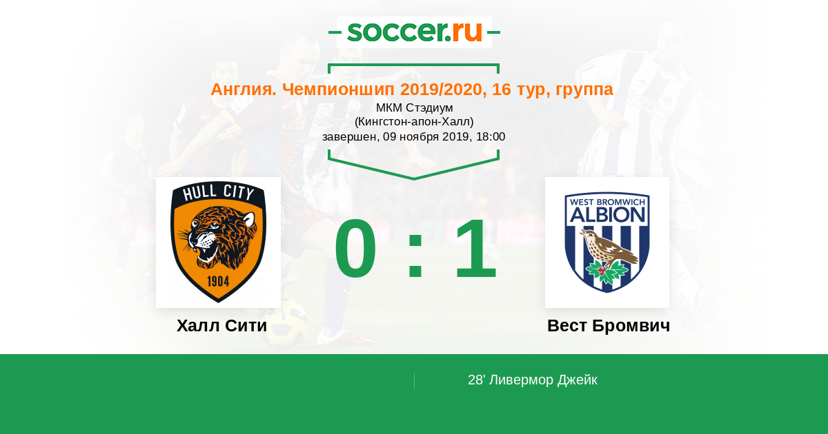 Протокол матча Халл Сити против Вест Бромвич
