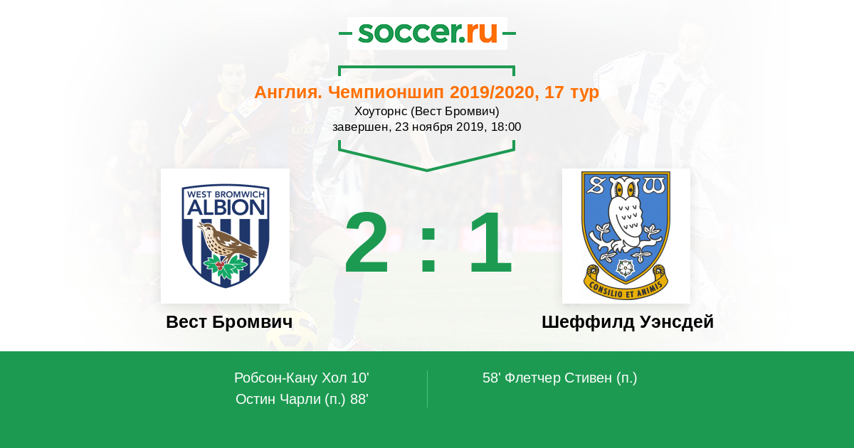 Протокол матча Вест Бромвич против Шеффилд Уэнсдей