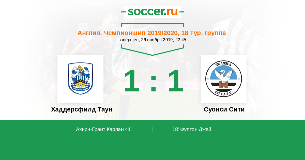 Протокол матча Хаддерсфилд Таун против Суонси Сити