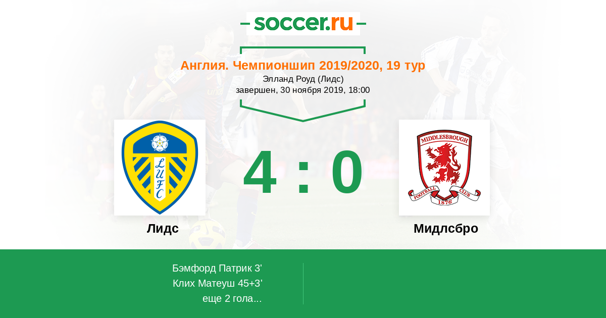 Протокол матча Лидс против Мидлсбро
