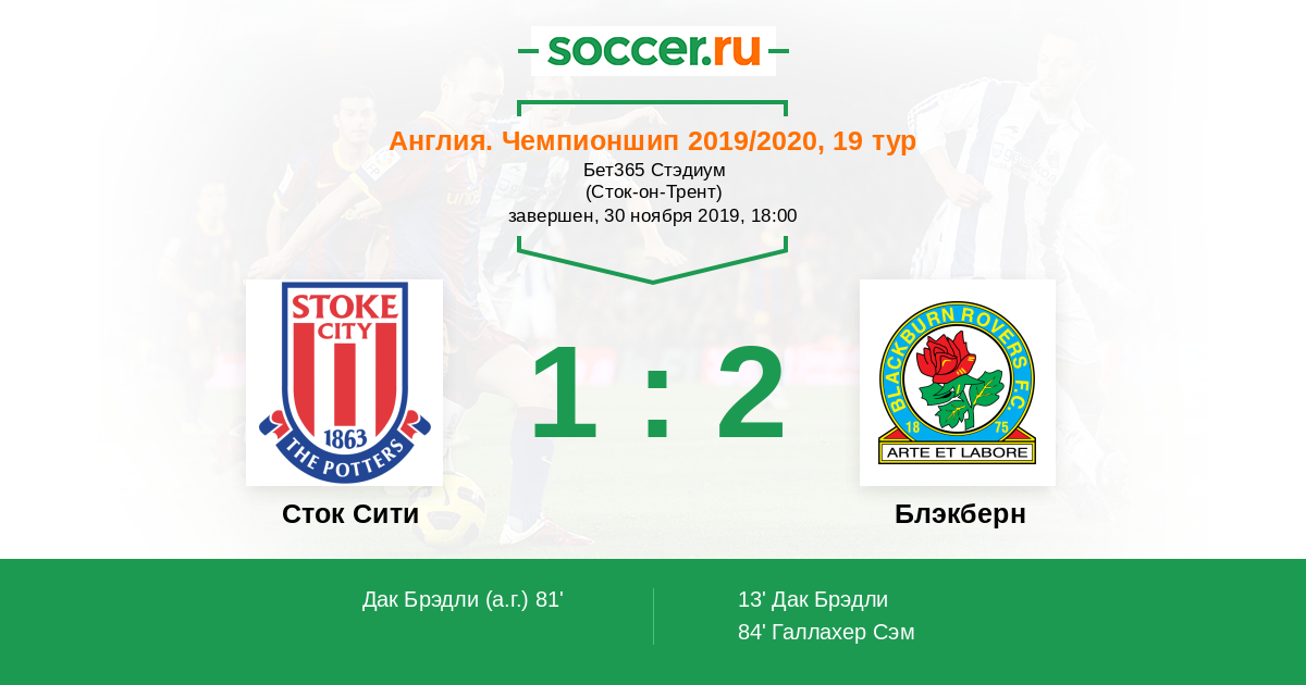 Протокол матча Сток Сити против Блэкберн