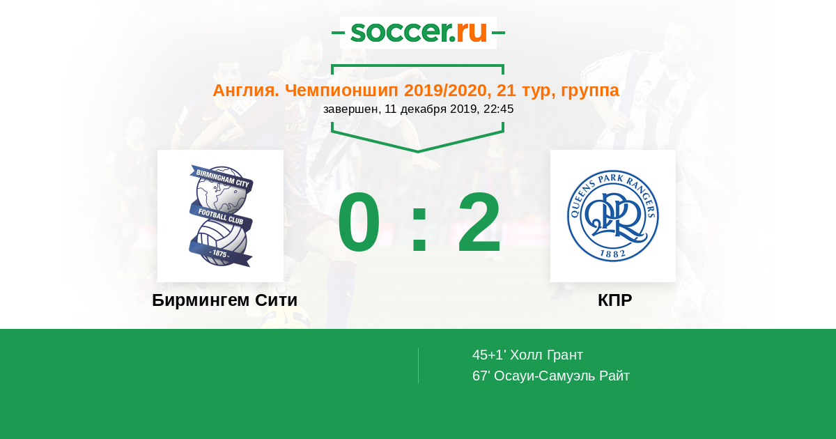 67' (0:2) Осауи-Самуэль Райт (20) (Пью Марк (7))