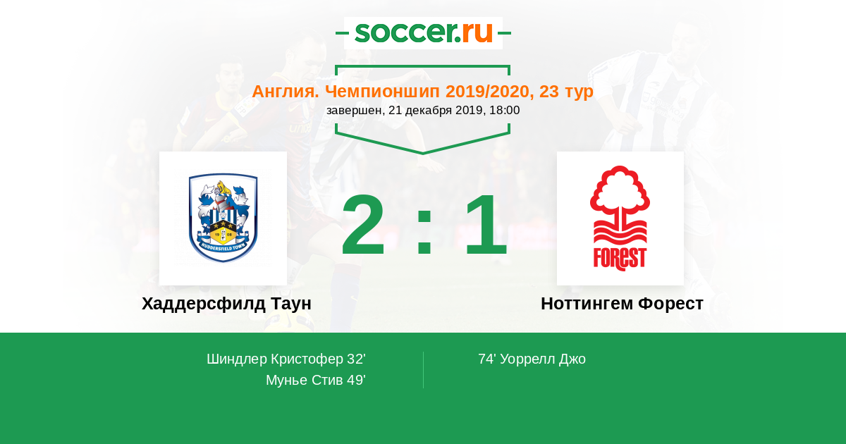 Протокол матча Хаддерсфилд Таун против Ноттингем Форест