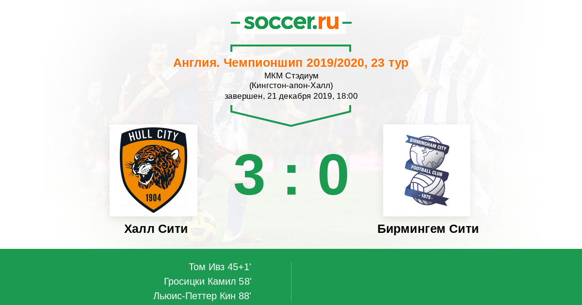 Протокол матча Халл Сити против Бирмингем Сити