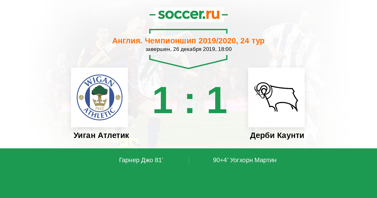 Протокол матча Уиган Атлетик против Дерби Каунти