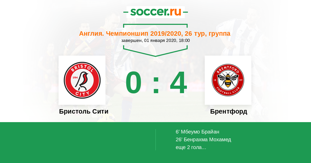 Протокол матча Бристоль Сити против Брентфорд