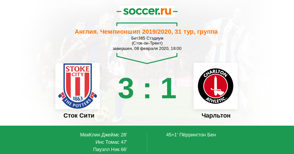 Протокол матча Сток Сити против Чарльтон