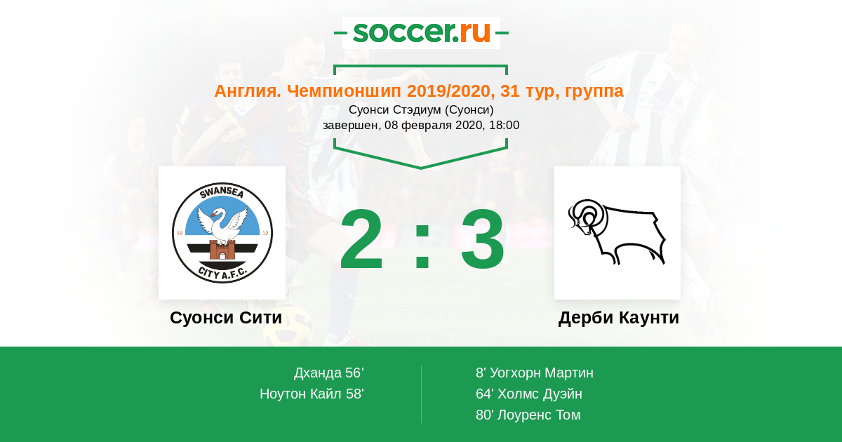 80' (2:3) Лоуренс Том (10) (Уогхорн Мартин (9))