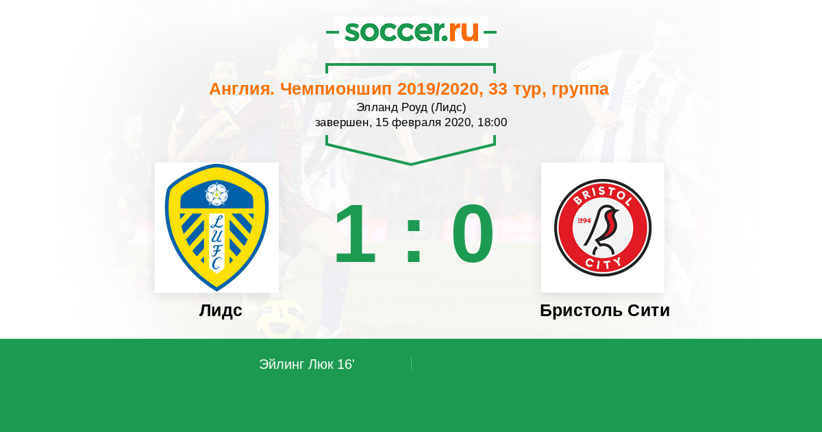 Протокол матча Лидс против Бристоль Сити