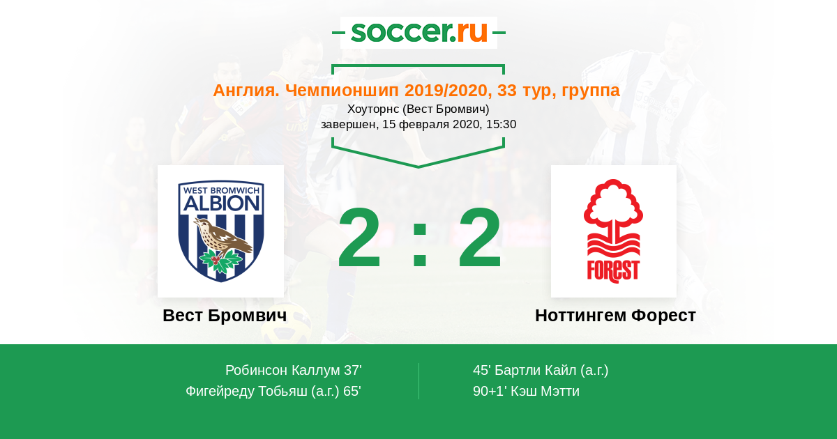 Протокол матча Вест Бромвич против Ноттингем Форест