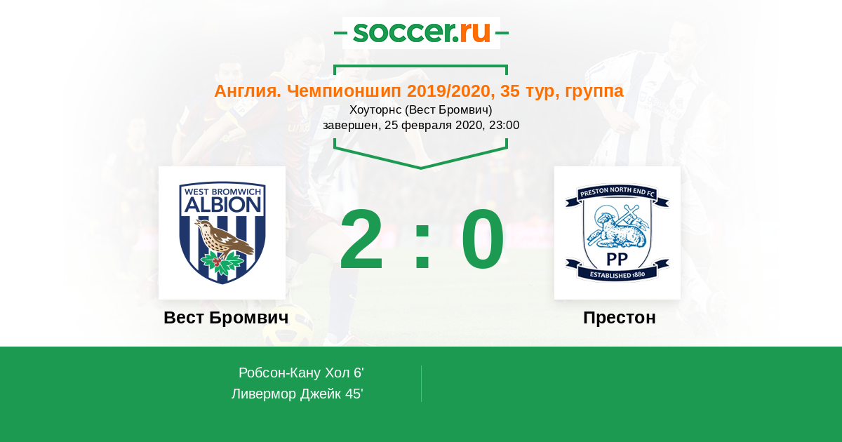 6' (1:0) Робсон-Кану Хол (4) (Робинсон Каллум (47))