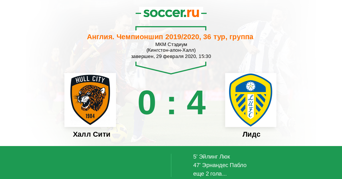 Протокол матча Халл Сити против Лидс