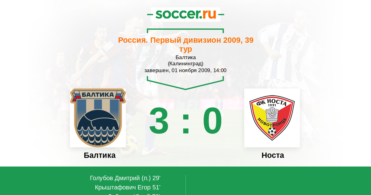 Протокол матча Балтика против Носта