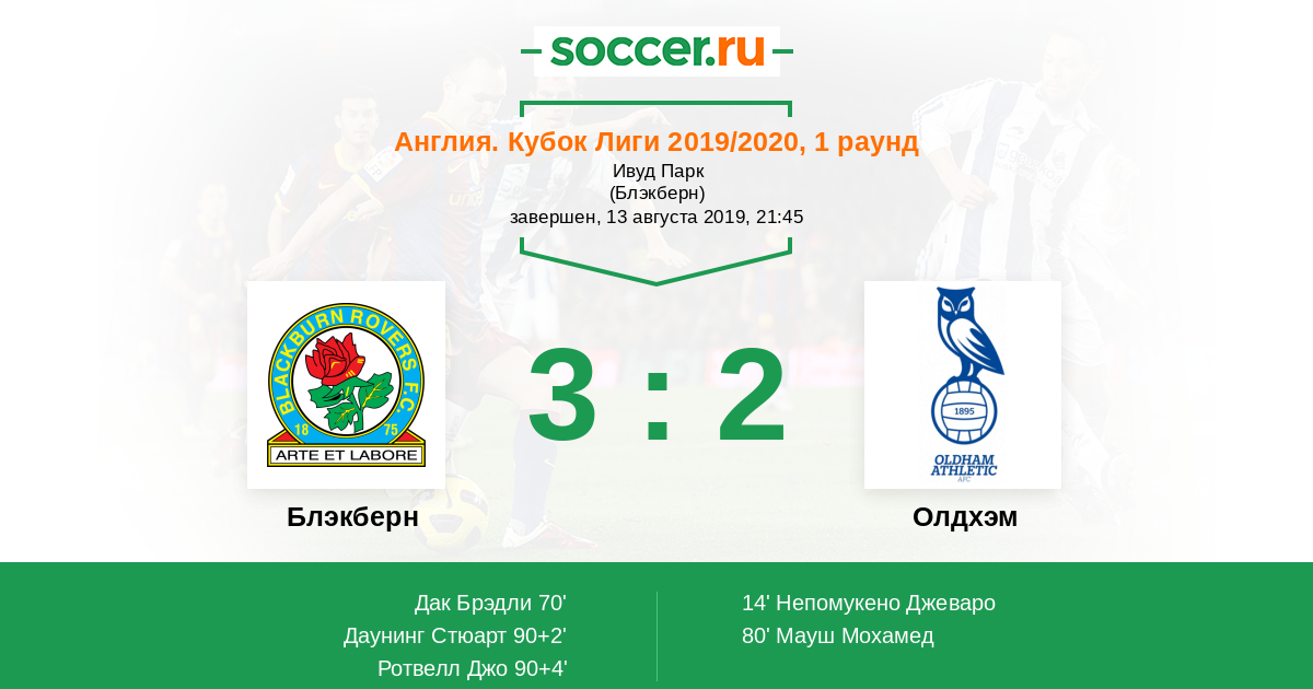 Протокол матча Блэкберн против Олдхэм