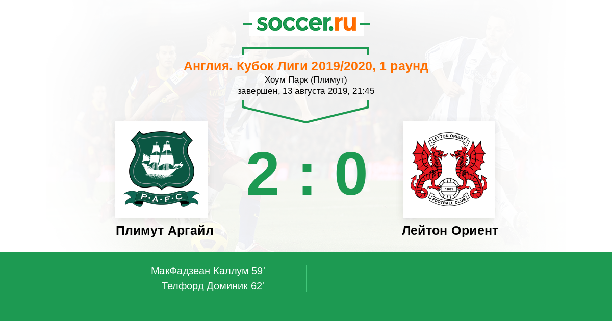 Протокол матча Плимут Аргайл против Лейтон Ориент