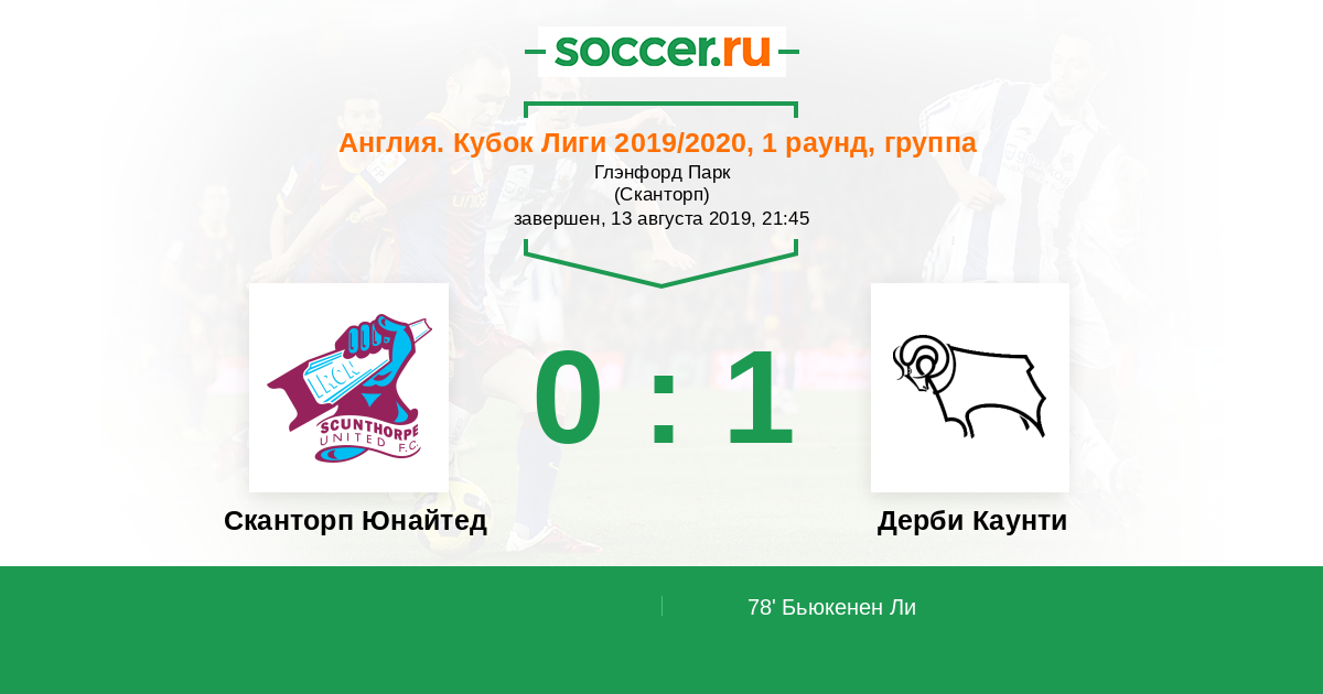 Протокол матча Сканторп Юнайтед против Дерби Каунти