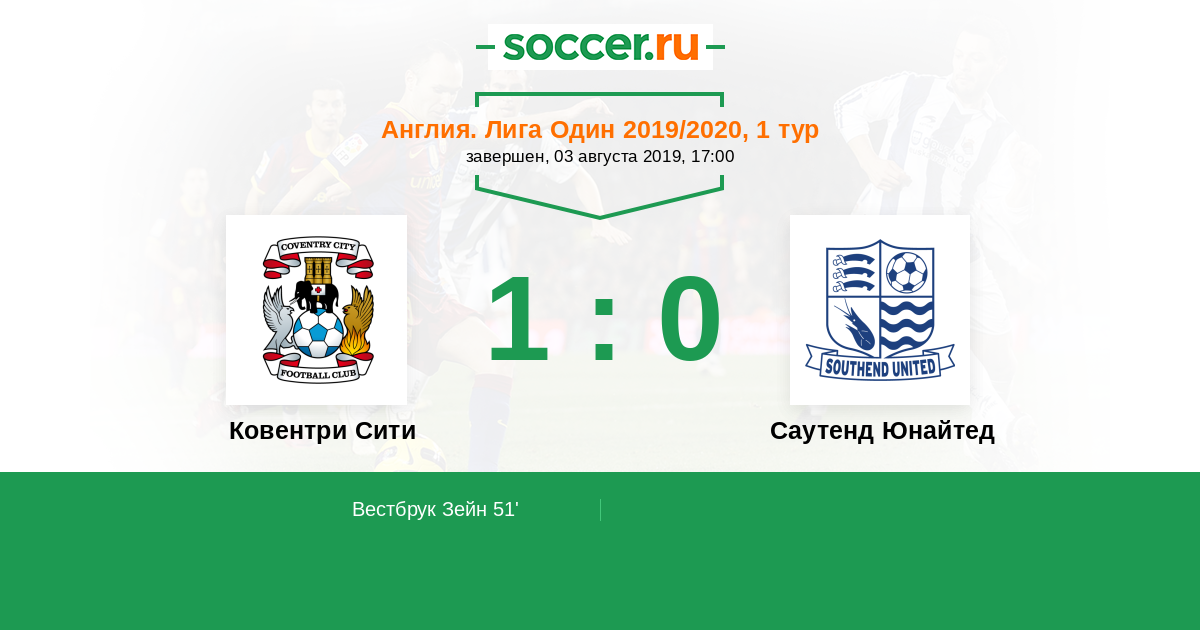 Протокол матча Ковентри Сити против Саутенд Юнайтед